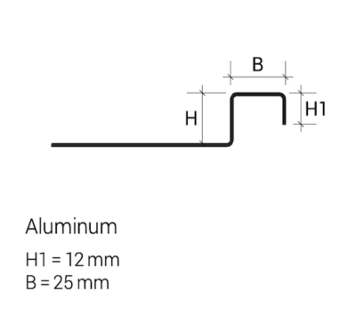 Dimensiuni:   H 20 mm – H1 12 mm  – B 25 mm